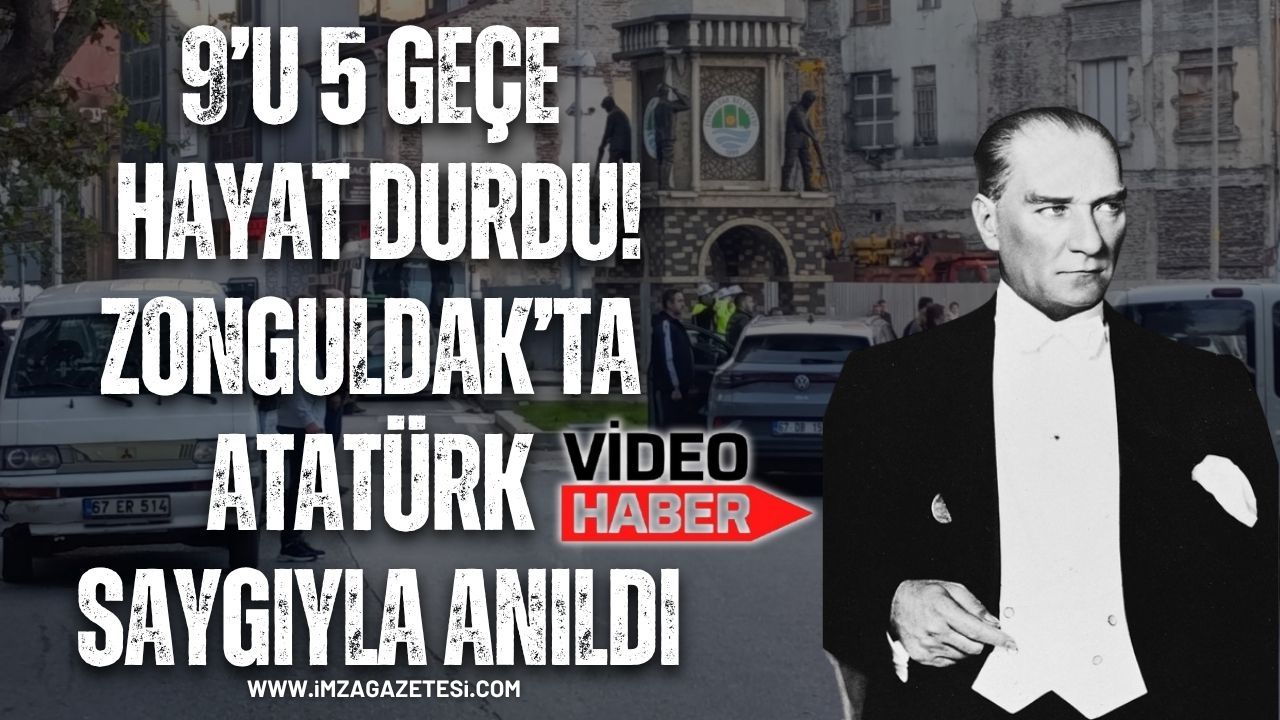 Türkiye Cumhuriyeti’nin kurucusu Ulu Önder Gazi Mustafa Kemal Atatürk, ölümünün 87. yıl dönümünde Zonguldak’ta düzenlenen törenlerle anıldı. Valilik hizmet binası önündeki Atatürk Anıtı’nda gerçekleştirilen törene Vali Osman Hacıbektaşoğlu, AK Parti Zonguldak Milletvekili Muammer Avcı, Garnizon Komutanı Deniz Albay Mustafa Güzel, Belediye Başkanı Tahsin Erdem, İl Emniyet Müdürü Sinan Ergen, Sahil Güvenlik Bot Komutanı Yüzbaşı Caner Erken, siyasi parti il başkanları, daire müdürleri, sendika temsilcileri, kamu kurum ve kuruluşları temsilcileri , muharip Gaziler, şehit aileleri ile sivil toplum kuruluşları temsilcileri katıldı.