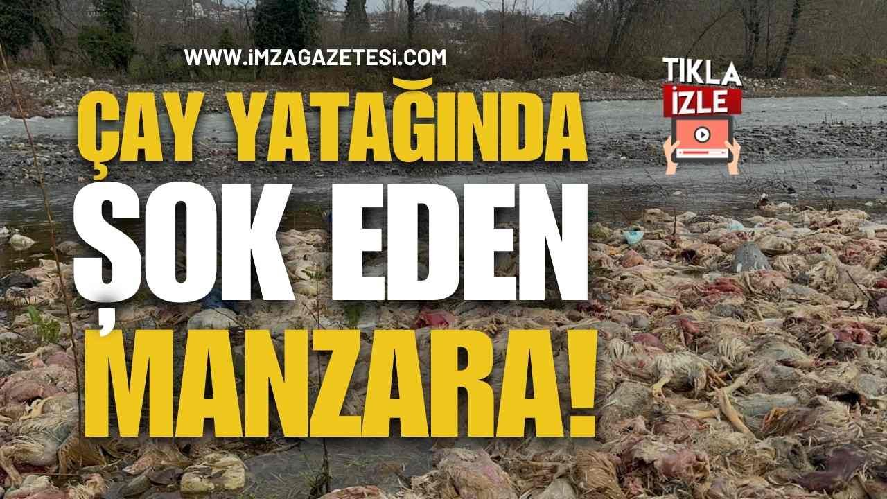 Alaplı’da çay içerisinde telef olmuş çok sayıda tavuğu gören çevre sakinleri durumu yetkililere bildirdi. Tavukların kimler tarafından ve hangi sebeple dere yatağına bırakıldığı henüz belirlenemezken, bölgede hayvan otlatan vatandaşlar durumun ciddiyetini vurguladı. Görgü tanıkları, ölü tavukların yaklaşık bir haftadır bölgede olduğunu ve mevsim normallerinin üzerindeki sıcaklıklar nedeniyle çevreye ağır bir koku yayılmaya başladığını ifade etti.