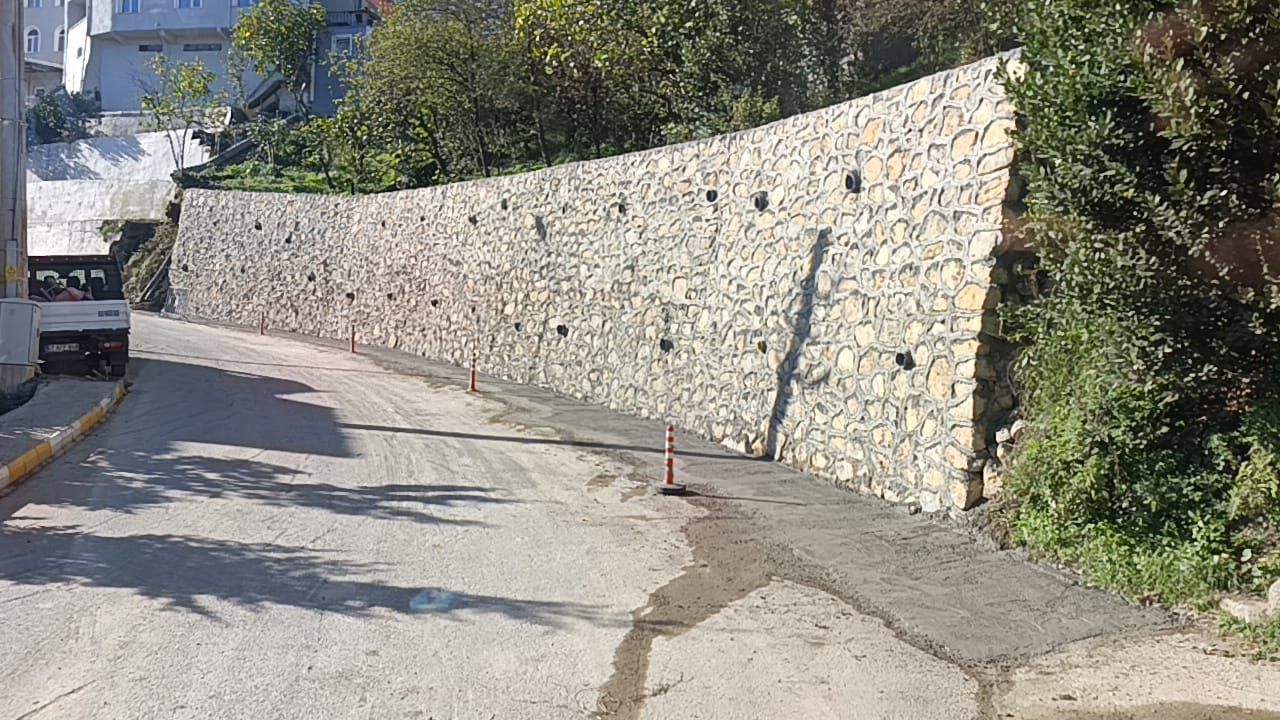 İstinat duvarı sayesinde hem yol hem de mahalle sakinlerinin evleri güvence altına alındı.