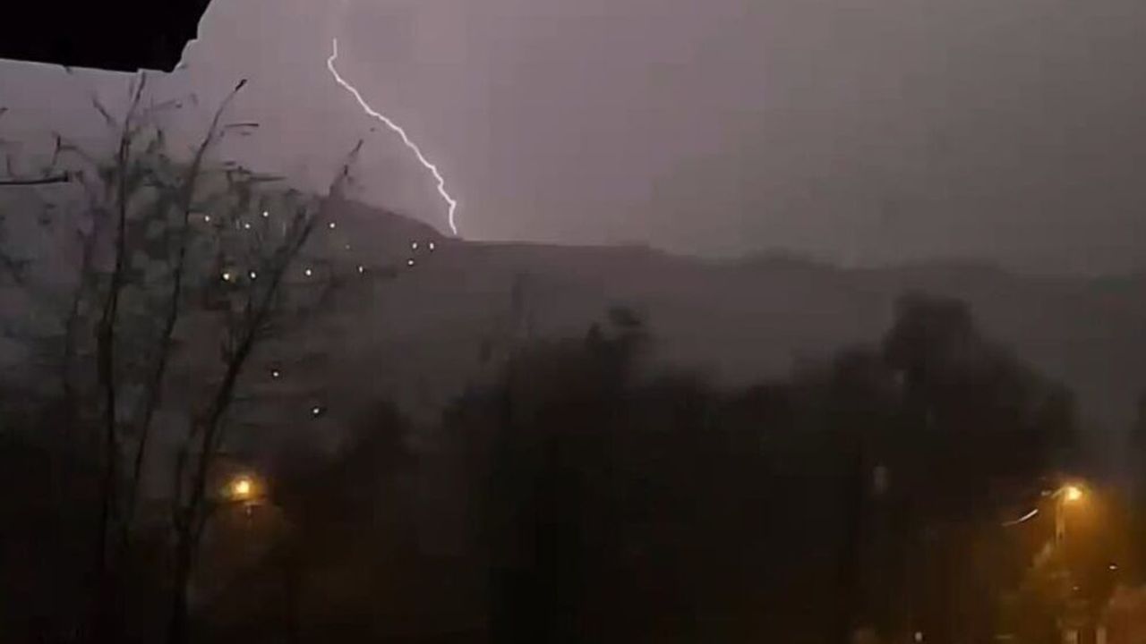 Bartın'ın Ulus ilçesinde akşam saatlerinde gök gürültüsü ile birlikte çakan şimşekler geceyi aydınlattı.