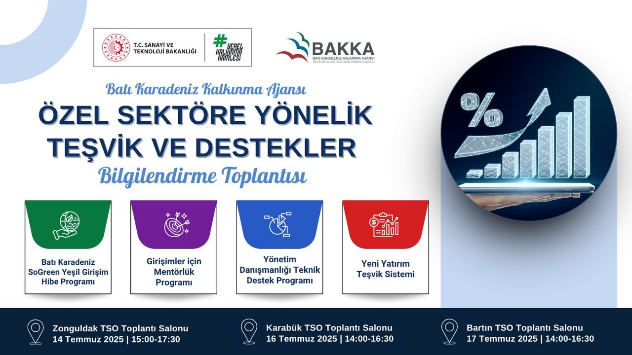 Batı Karadeniz Kalkınma Ajansı (BAKKA), bölgedeki özel sektörün gelişimini desteklemek ve sosyo-ekonomik kalkınmaya katkı sağlamak amacıyla önemli bir bilgilendirme toplantısı düzenliyor. Ajans, Dünya Bankası ve Hazine ve Maliye Bakanlığı arasında imzalanan kredi anlaşması kapsamında yürütülen SoGreen Projesi ile birçok yeni destek programını paydaşlara tanıtacak.