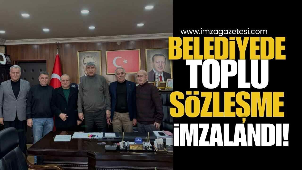“Belediyemiz ile Türkiye Belediye ve Genel Hizmetler İşçileri Sendikası (Belediye-İş) Zonguldak Şubesi arasında, belediyemizde görev yapan kadrolu işçilerimizi kapsayan Toplu İş Sözleşmesi karşılıklı mutabakatla imza altına alındı.