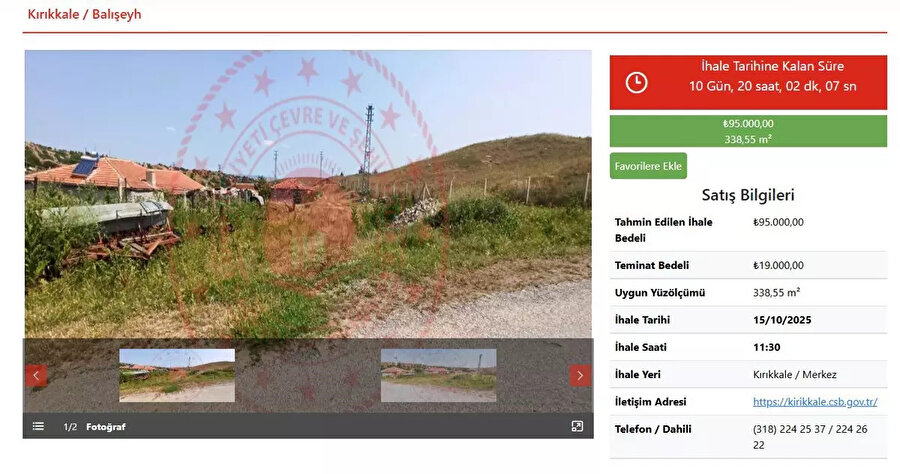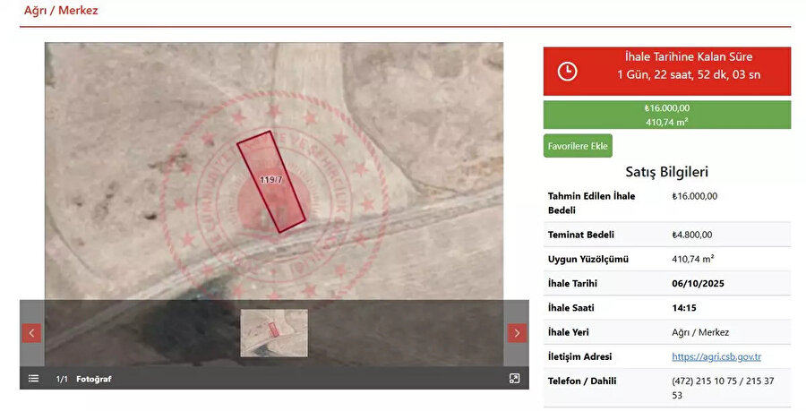 Uygun yüzölçümü 117,37 metrekare olarak belirtilen arsanın ihale zamanı 21 Ekim 2025 saat 16.00.