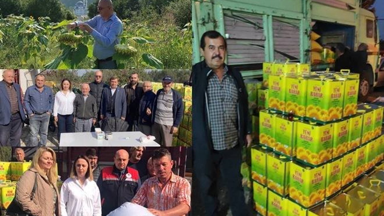 Zonguldak'ın Çaycuma ilçesi Nebioğlu Beldesi şenlikleri ve Merkeze bağlı Şeyhoğlu köyünde ayçiçeği üreticilerine hasatları karşılığında yağ fabrikası tarafından yağları verildi.