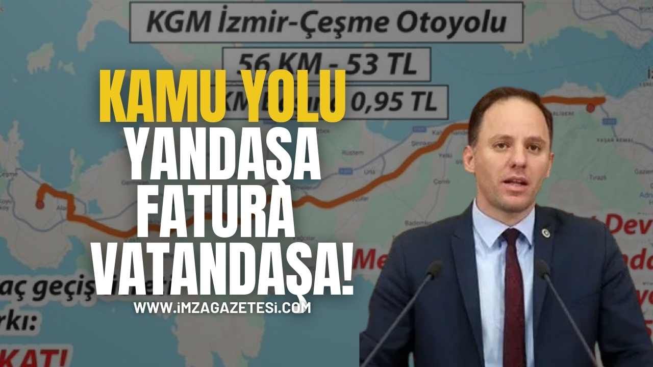 Çünkü, 2026 yılı itibariyle; Karayolları 2.Bölge’de, kamunun işlettiği, KGM İzmir-Çeşme Otoyolu’ndaki araç geçiş ücreti kilometre başına 0,95 TL. Aynı karayolları bölgesinde bulunan, aynı uzunluktaki, Yap-İşlet-Devret modeliyle yandaş şirketlerin işlettiği Menemen-Çandarlı-Aliağa Otoyolu’nun araç geçiş ücreti kilometre başına 3,66 TL yani aradaki fark tam 4 kat.