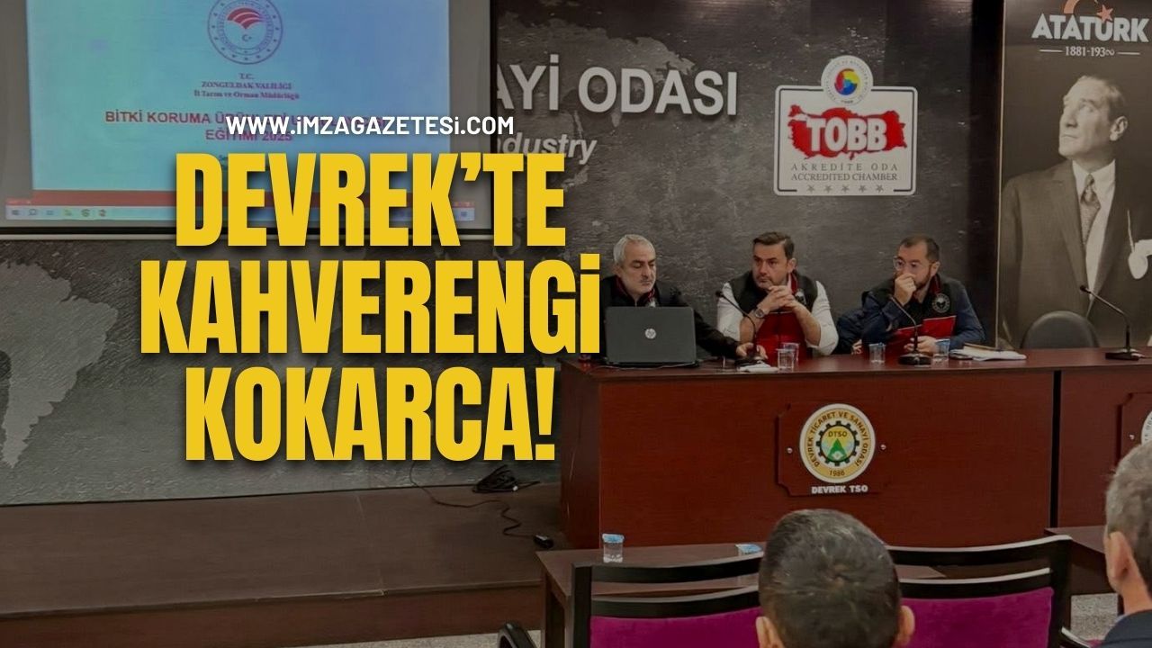 “Devrek ilçemizde, kahverengi kokarca zararlısına karşı yürütülen çalışmalar kapsamında, bitki koruma ürünlerinin doğru ve güvenli kullanımıyla ilgili bilgilendirme ve eğitim toplantısı Devrek ilçemizde düzenlendi.