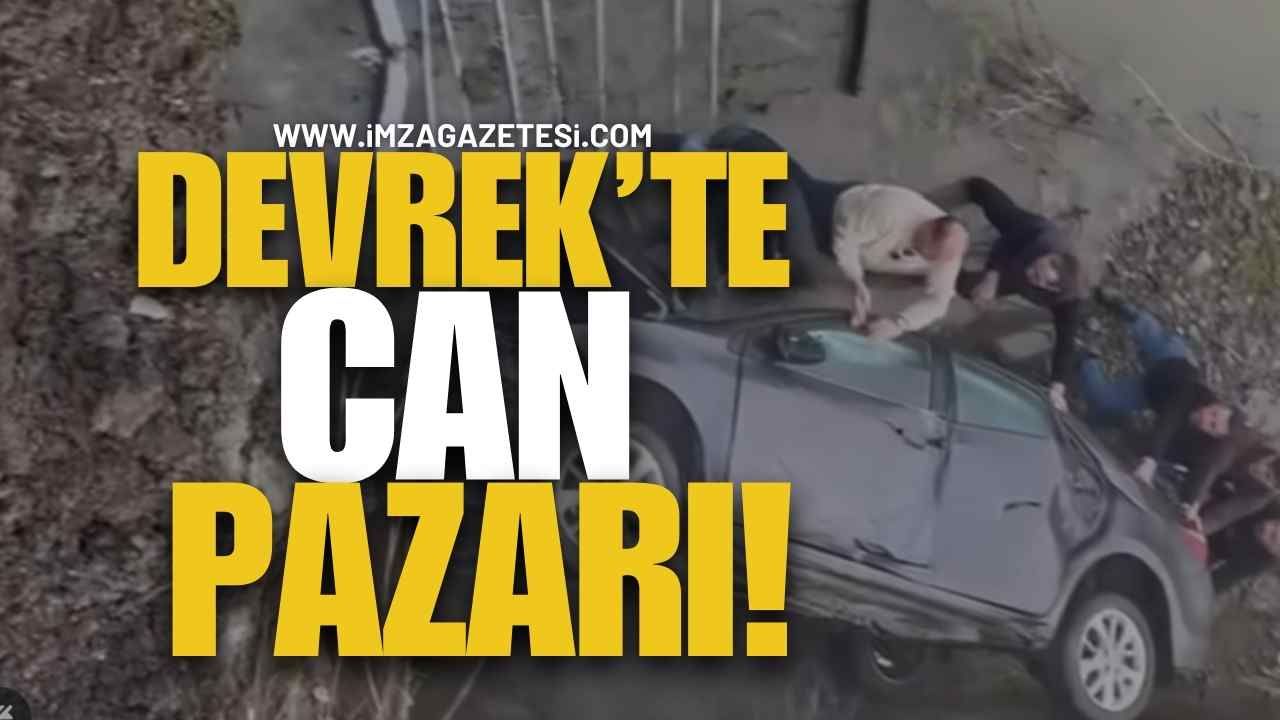 Zonguldak’ın Devrek ilçesine bağlı Bakacakkadı beldesinde sabah saatlerinde meydana gelen trafik kazası yürekleri ağza getirdi. Edinilen bilgilere göre kaza, saat 09.30 sıralarında yaşandı. Sürücüsünün direksiyon hâkimiyetini kaybettiği otomobil, yaklaşık 5 metre yükseklikten dere yatağına uçtu.