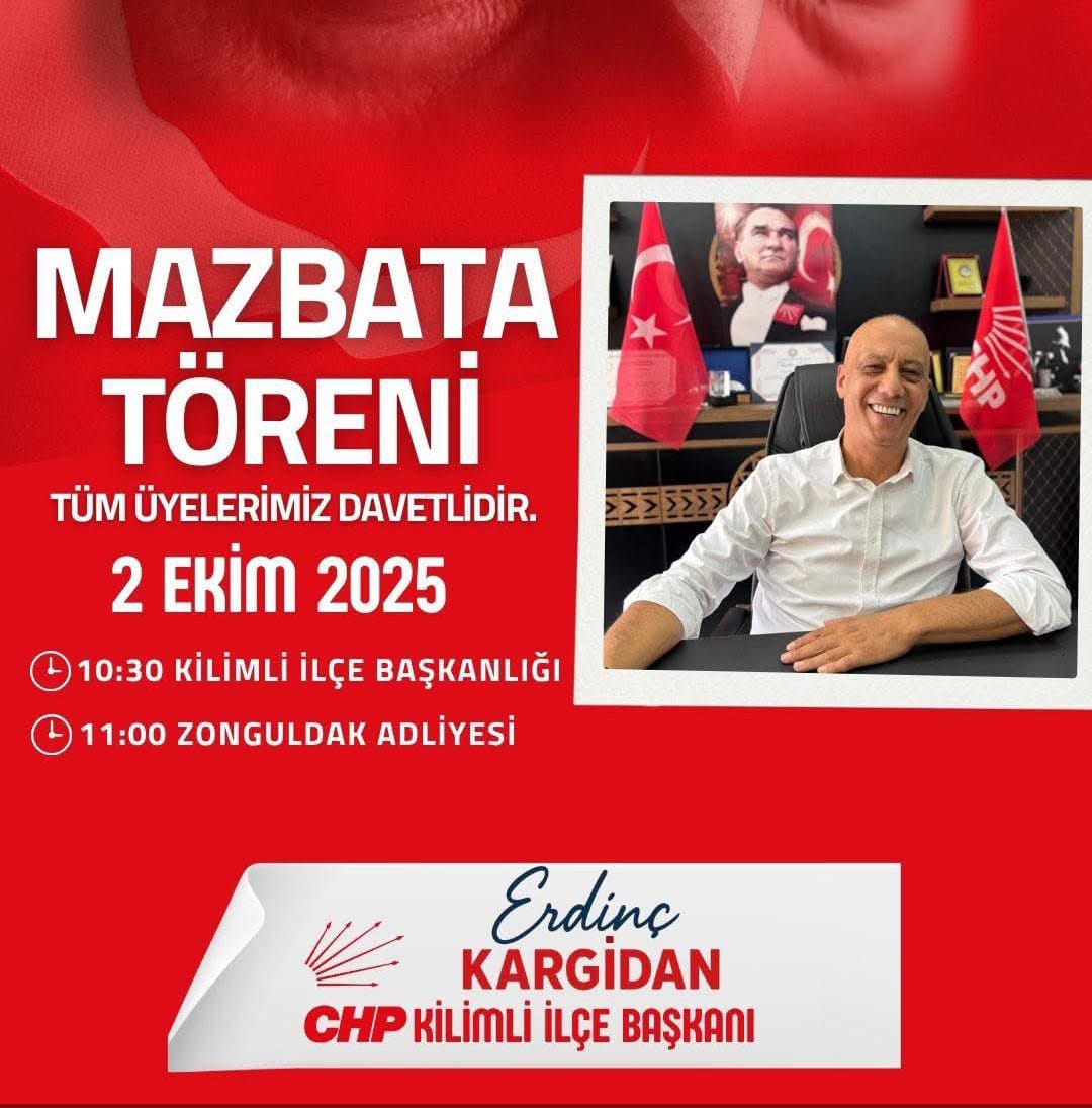 CHP Kilimli İlçe Başkanı Erdinç Kargidan mazbata törenine tüm partileri davet etti. Kargidan, “Hep birlikte demokrasi şölenimizi paylaşmak istiyoruz. Törenimize katılımınızı bekliyoruz” dedi.