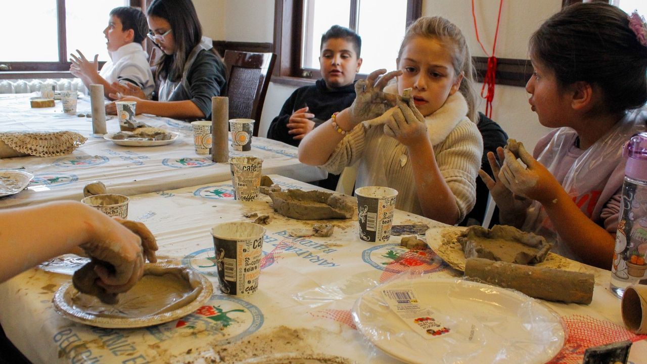 Kent Müzesi’nde gerçekleşen “Minik Eller Seramikte İlk Tabağım” atölyesinde bir araya gelen çocuklar eğitmenleri eşliğinde seramik ürünler hazırdılar.