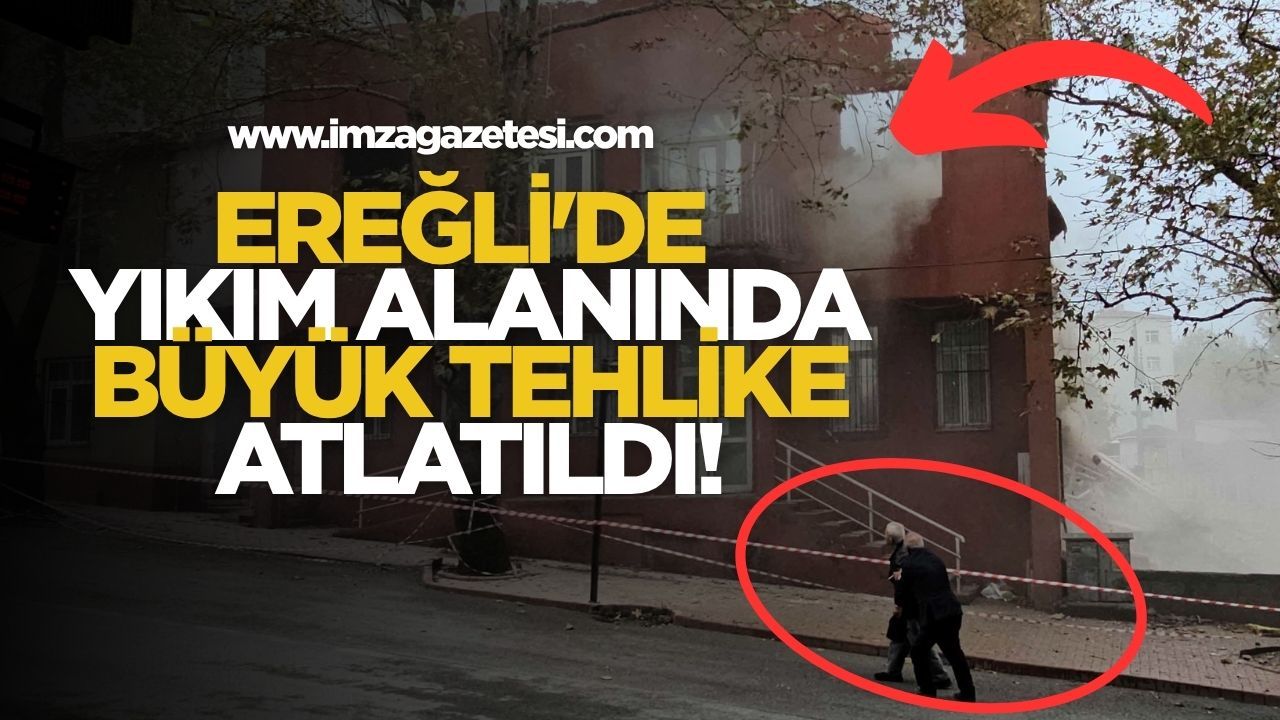 Yıkım alanındaki en büyük tehlike, tüm ikazlara rağmen yoluna devam eden yaşlı bir vatandaşla yaşandı. İş makinesinin çalıştığı, toz bulutunun havada uçuştuğu alanda yürümekte ısrar eden adamı gören görevliler paniğe kapıldı.