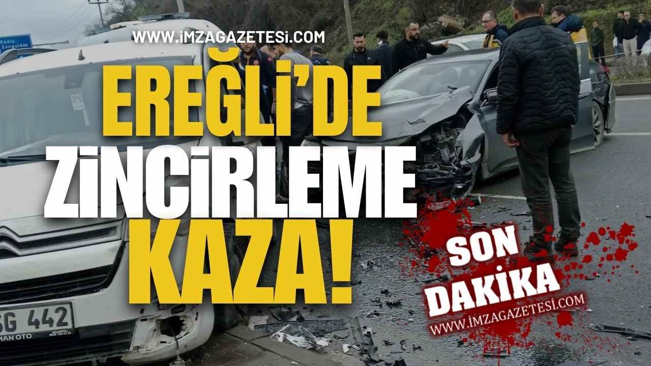 Ereğli ilçesine bağlı Elmatepe Mahallesi mevkisinde, birden fazla aracın karıştığı bir zincirleme trafik kazası meydana geldi. Akşam saatlerinde yaşanan olayda, araçların çarpışması sonucu yol üzerinde can pazarı yaşandı.