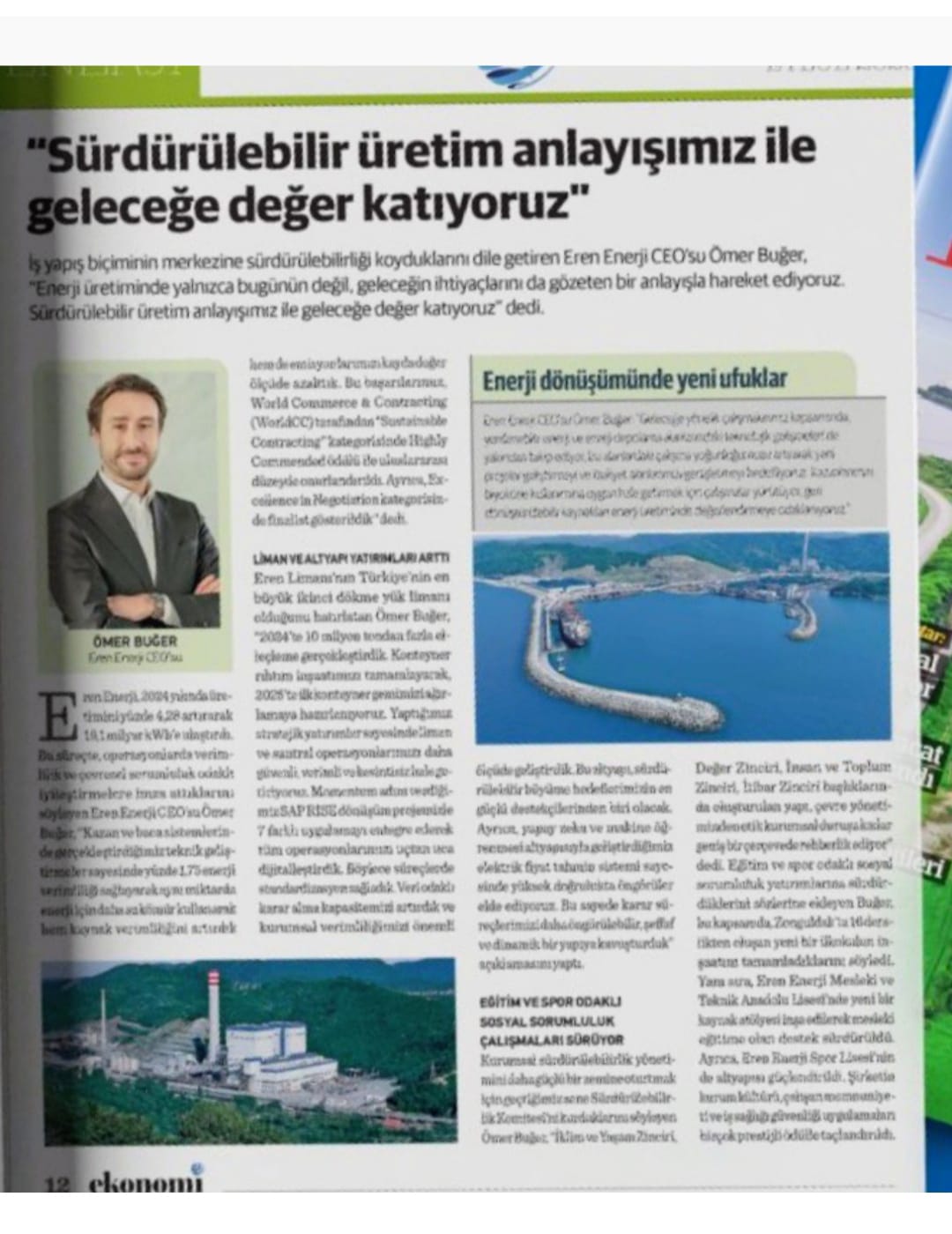 Bu başarıyla birlikte Eren Enerji, Türkiye’nin enerji sektöründeki yerini daha da güçlendirdi.