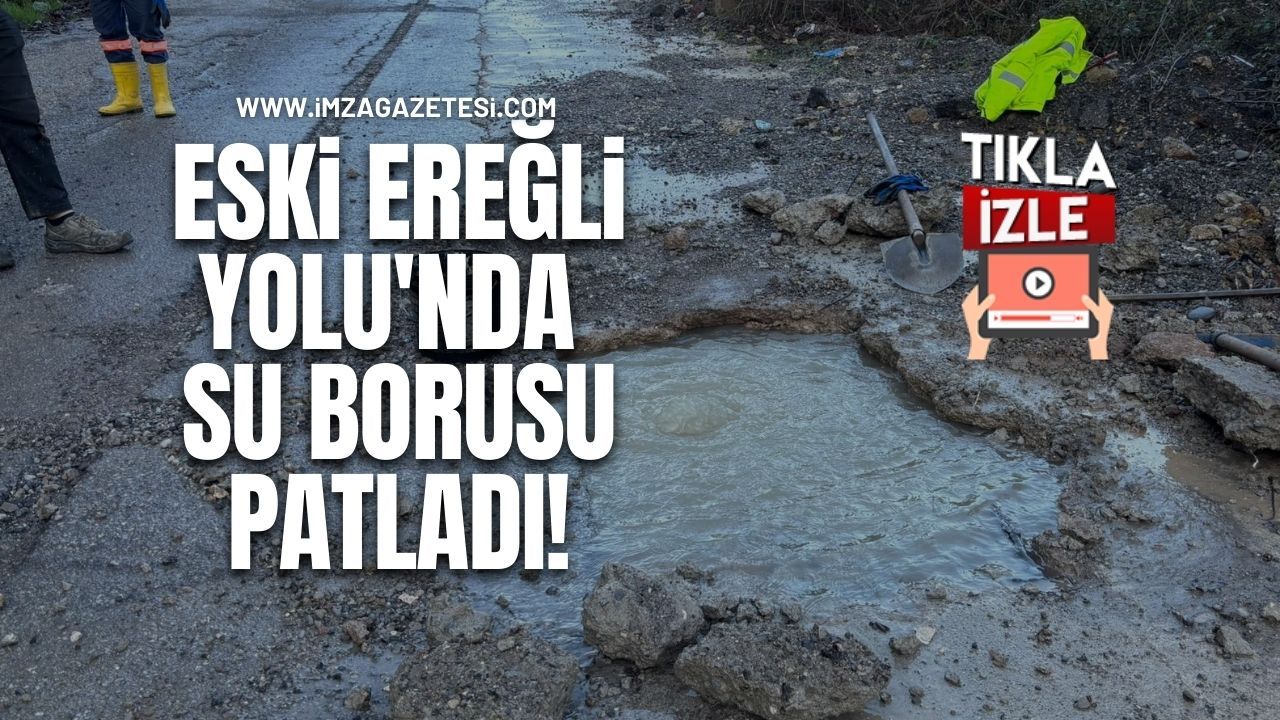Patlama sonrası tonlarca su yola akarken, Kozlu Belediyesi ekipleri arızayı gidermek için hemen onarım çalışması başlattı.