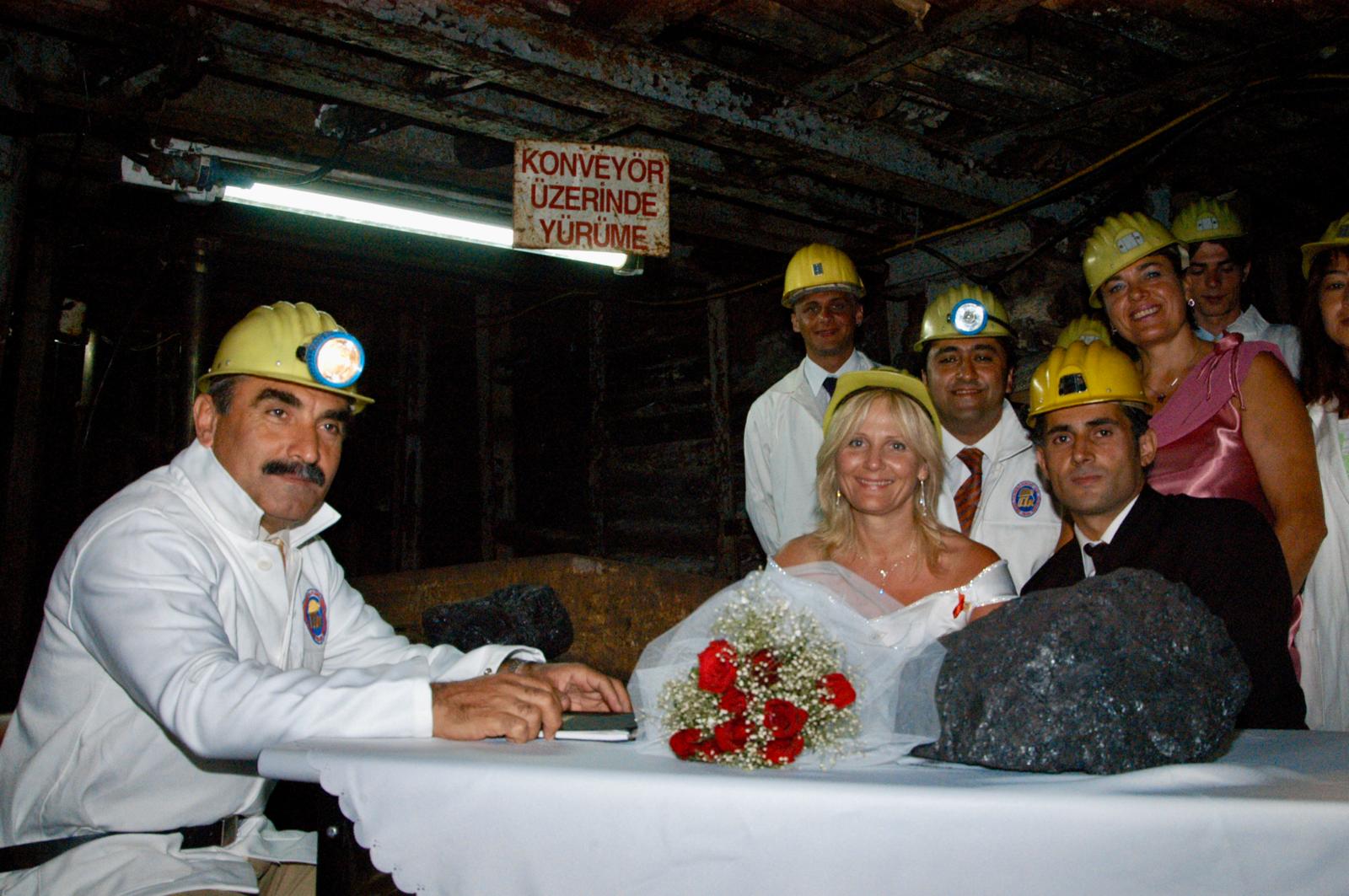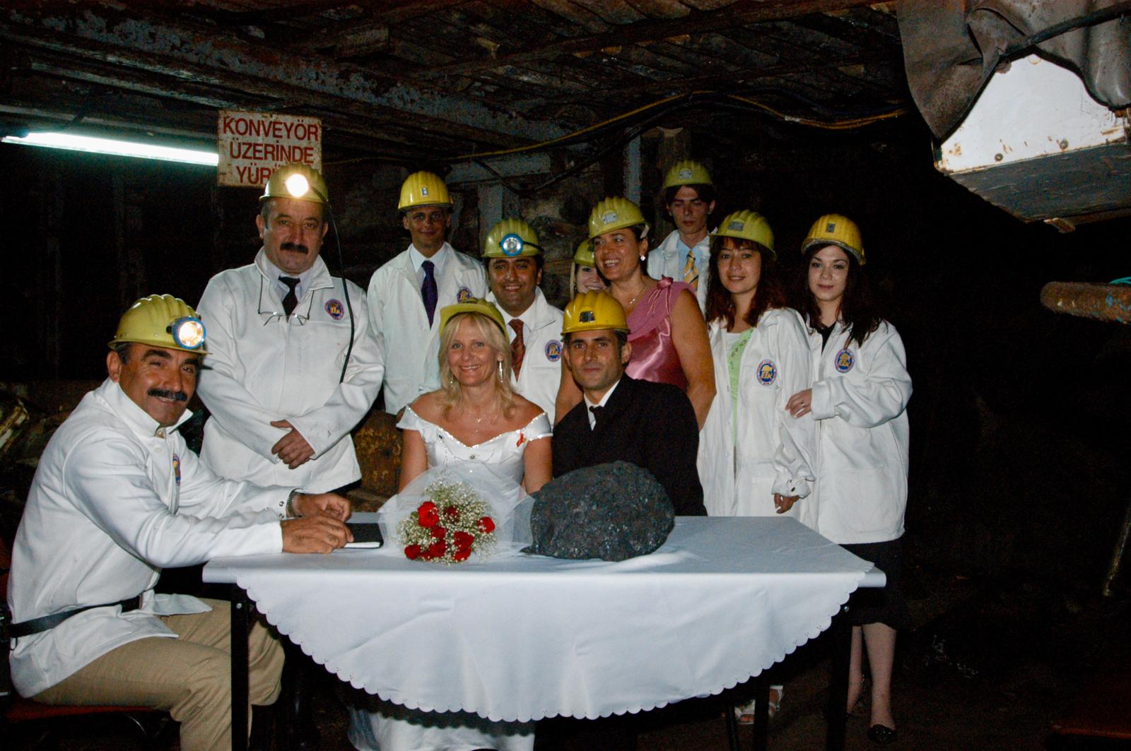 Alınan güvenlik önlemleri neticesinde törene eşlik eden davetlilerin önünde baretlerimizden yansıyan ışıklarla maden ocağının içinde nikåh merasimine başladık. Bir tercüman eşliğinde gelin adayımız ile iletişim kuruluyordu. Keyifli heyecanlı dakikalardan sonra sıra dışı olarak iz bırakan nikâh töreni nihayet bitmişti.