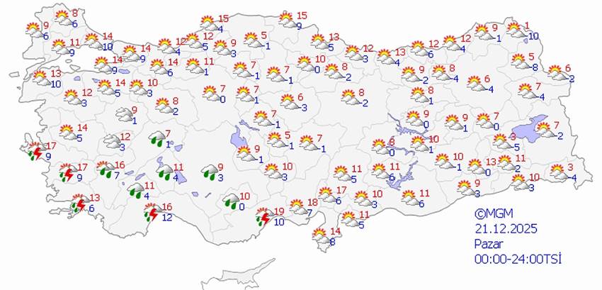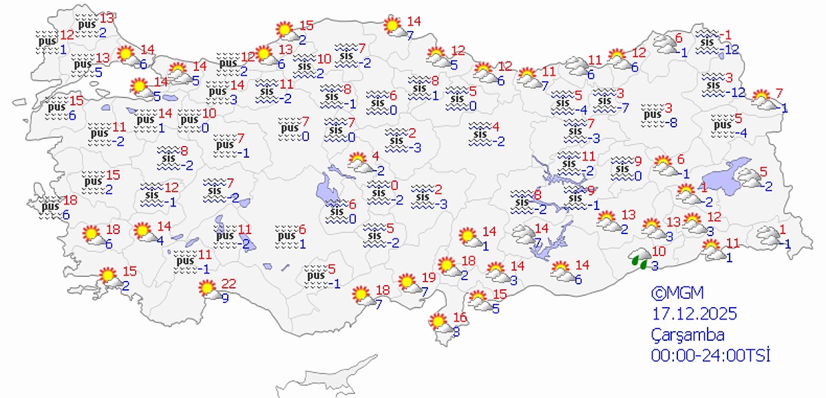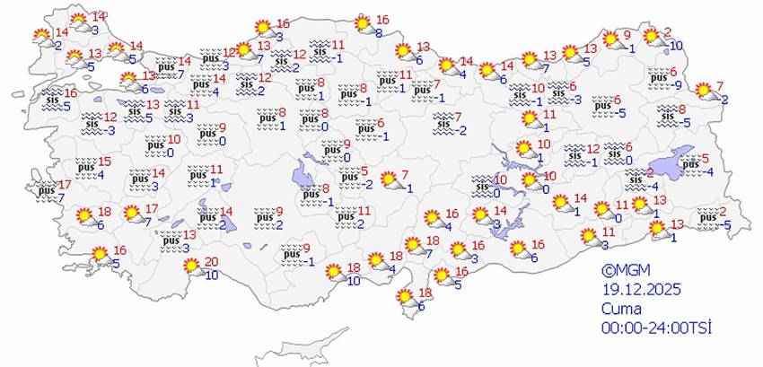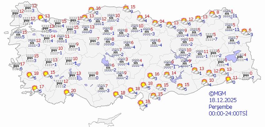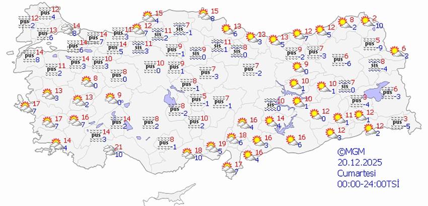 Meteoroloji Genel Müdürlüğü’nün (MGM) verilerine göre, ülke genelinde hava durumu yeniden değişiyor; kar yerini yüksek basınç kaynaklı puslu ve kirli havaya bırakıyor.
