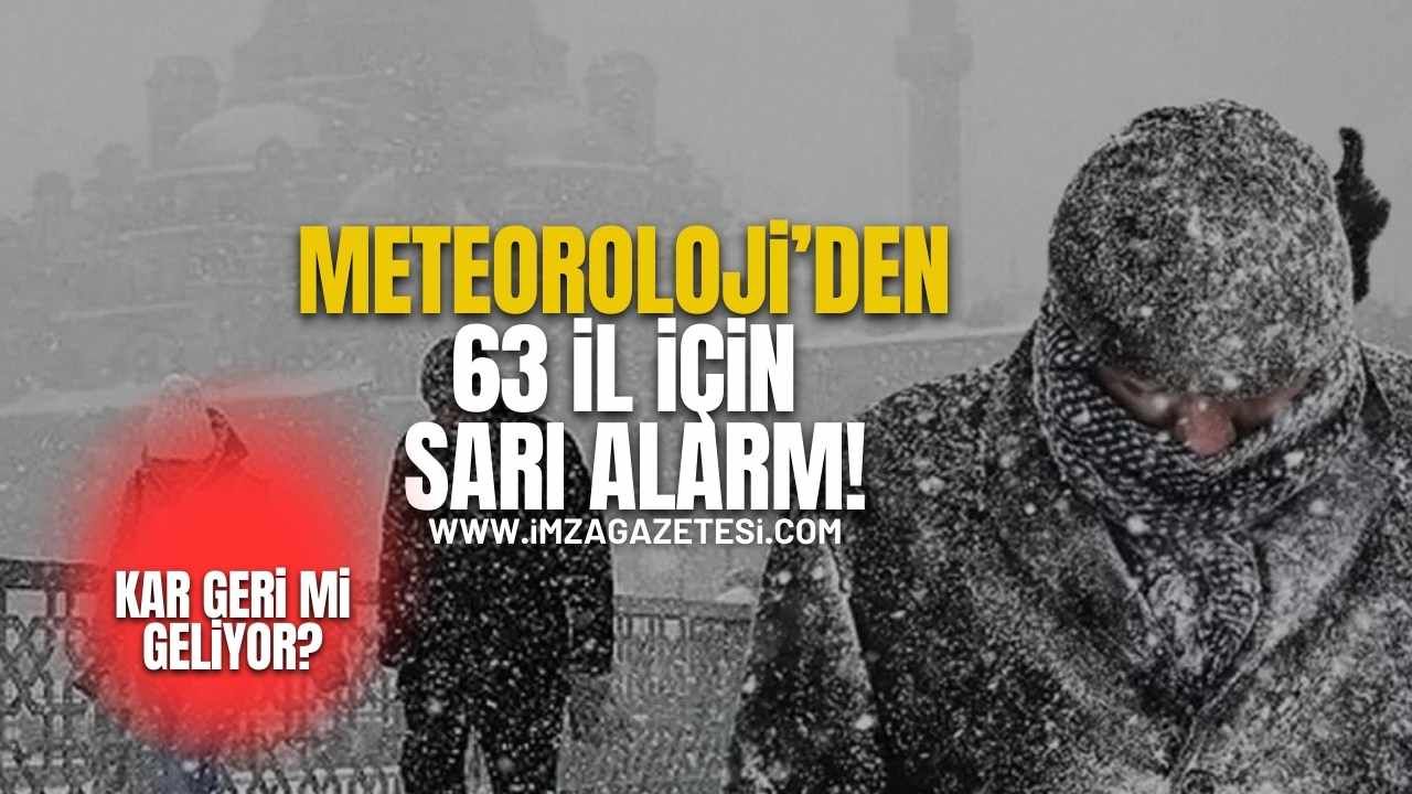 63 il için sarı kodlu uyarı verilirken, İstanbul’da sıcaklıkların 8-10 derece birden düşmesi ve kar yağışının yeniden etkili olması bekleniyor.