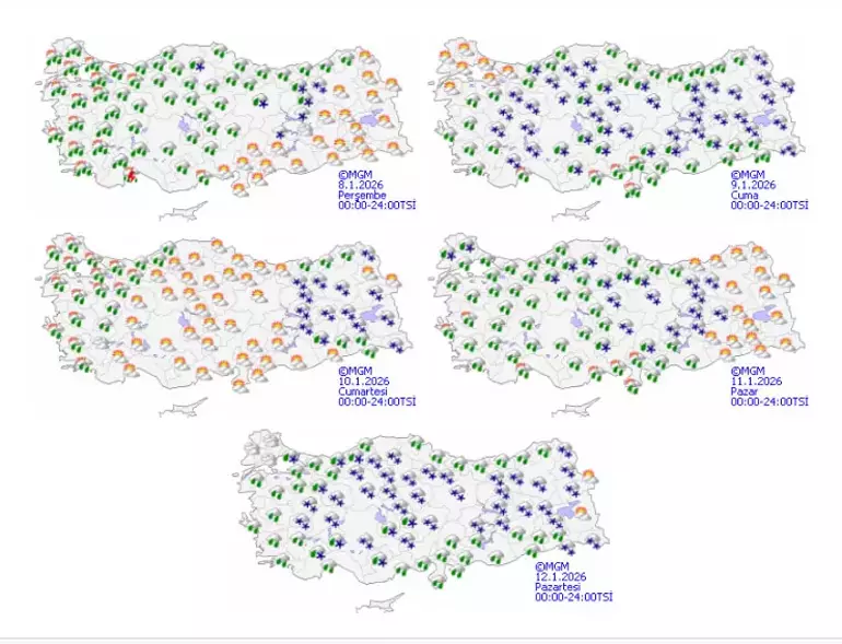 Ayrıca cuma günü yurdun büyük bölümünde kar yağışı bekleniyor.