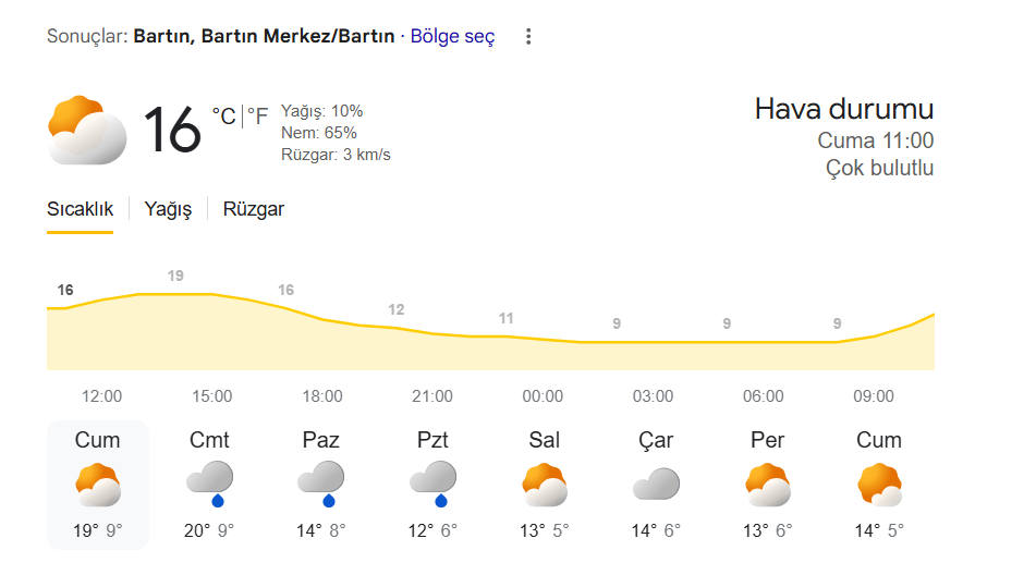 Bartın için detaylı nem,sıcaklık ve yağış oranı...
