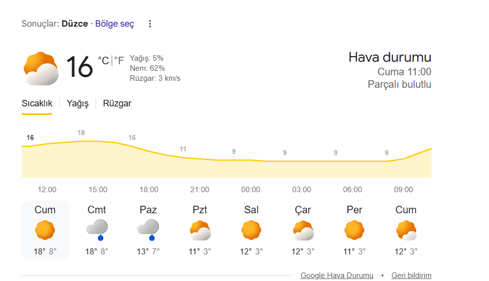Düzce için detaylı nem,sıcaklık ve yağış oranı...