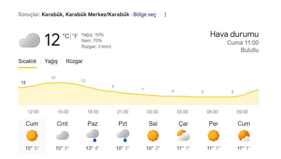Karabük için detaylı nem,sıcaklık ve yağış oranı...