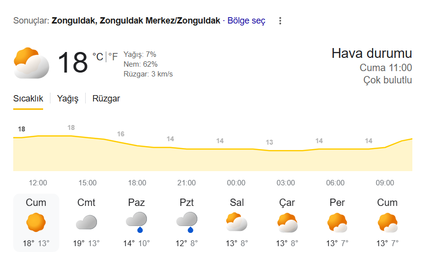 Zonguldak için detaylı nem,sıcaklık ve yağış oranı...
