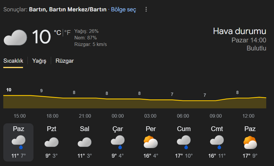 Meteoroloji tarafından yayınlanan verilere göre Bartın'da haftalık hava durumu nasıl olacak?