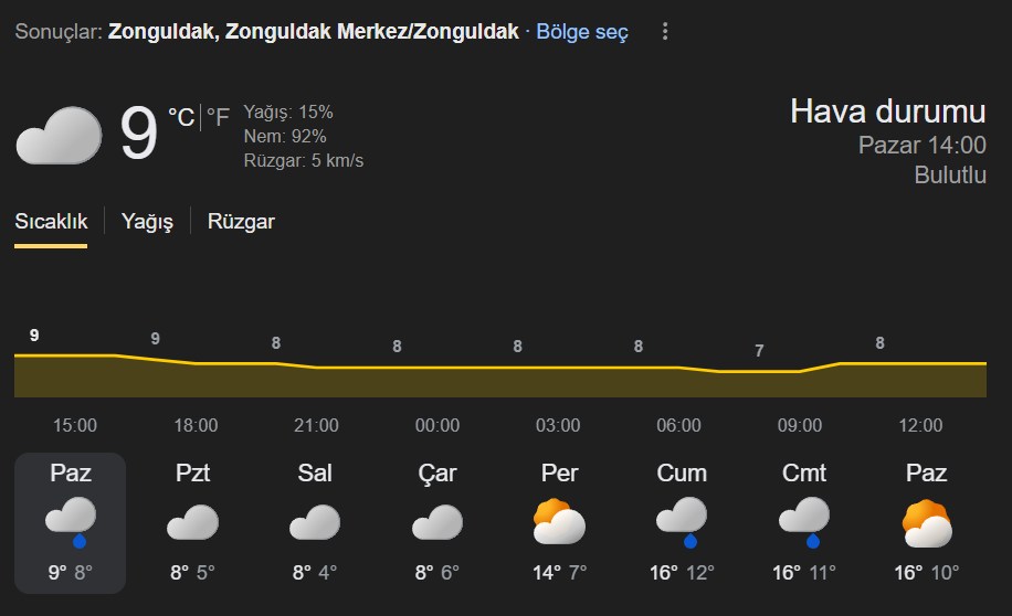 Emeğin başkenti Zonguldak'ta meteorolojik verilere göre haftalık hava durumu nasıl olacak?