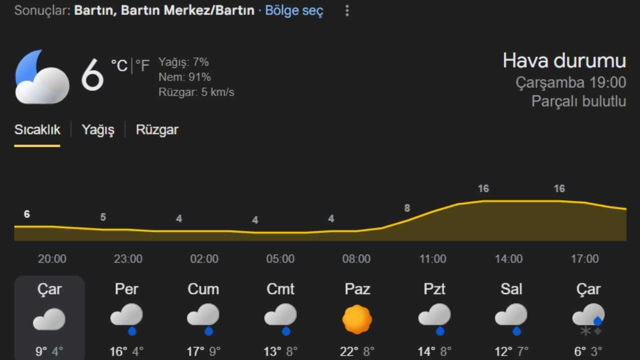 Bartın Hava Durumu