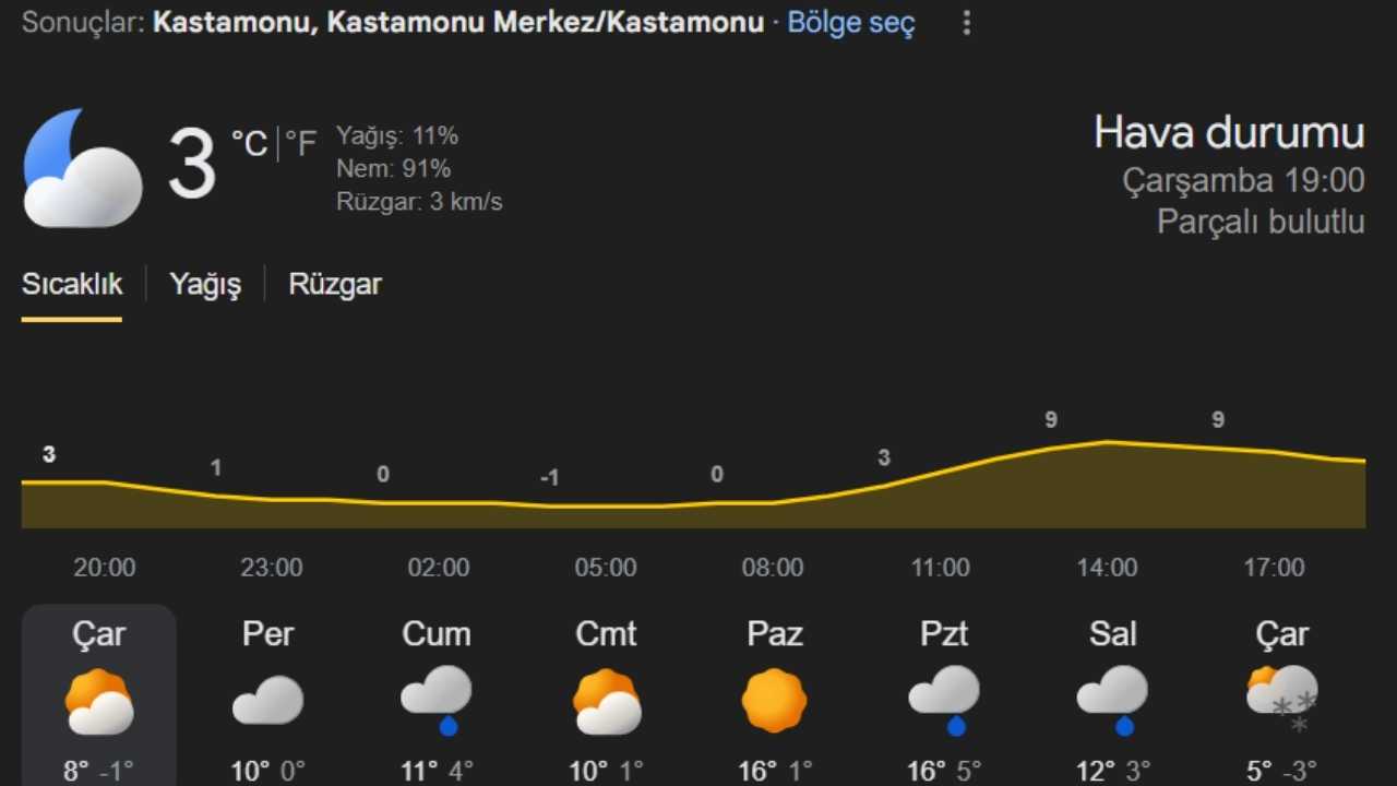 Kastamonu Hava Durumu