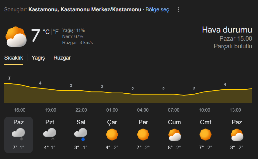 Kastamonu'nun haftalık hava durumu raporu, bölgenin yüksek kesimlerinde kışın yüzünü gösterdiğini ortaya koyuyor. En yüksek sıcaklıkların 3°C ile 8°C arasında kalacağı, gece sıcaklıklarının ise -2°C'ye kadar düşeceği tahmin ediliyor. Pazartesi ve Salı günleri hafif kar yağışı ve kar sağanakları bekleniyor. Çarşamba gününden itibaren gökyüzünün açması ve güneşin kendini göstermesi bekleniyor, ancak gece don ve buzlanma tehlikesi devam edecek. Yetkililer, sürücülerin ve vatandaşların özellikle sabah ve gece saatlerinde tedbirli olmaları konusunda uyarıyor.