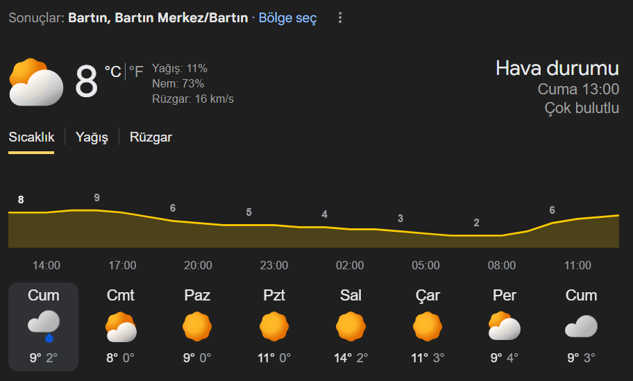Bartın hava durumu
