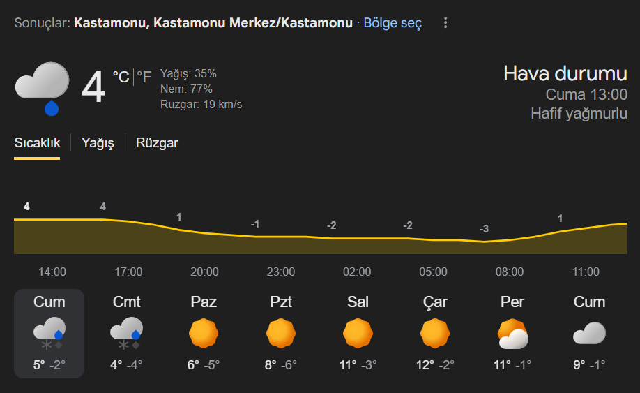 Kastamonu hava durumu