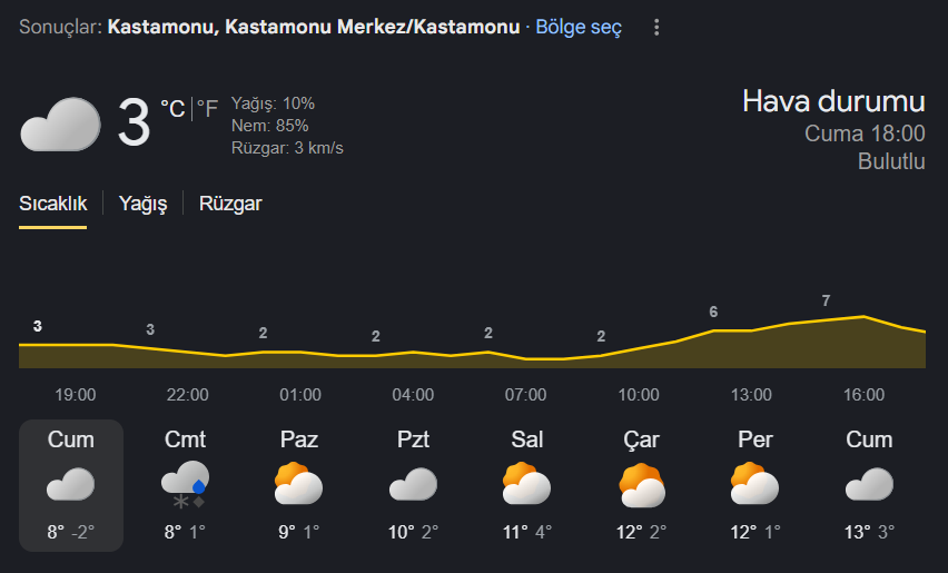 Kastamonu için yayınlanan meteorolojik veriler kapsamında yağışın etkisini azaltarak bittiği görülüyor. Yayınlanan raporda Kastamonu için cumartesi hariç yağış beklenmiyor.