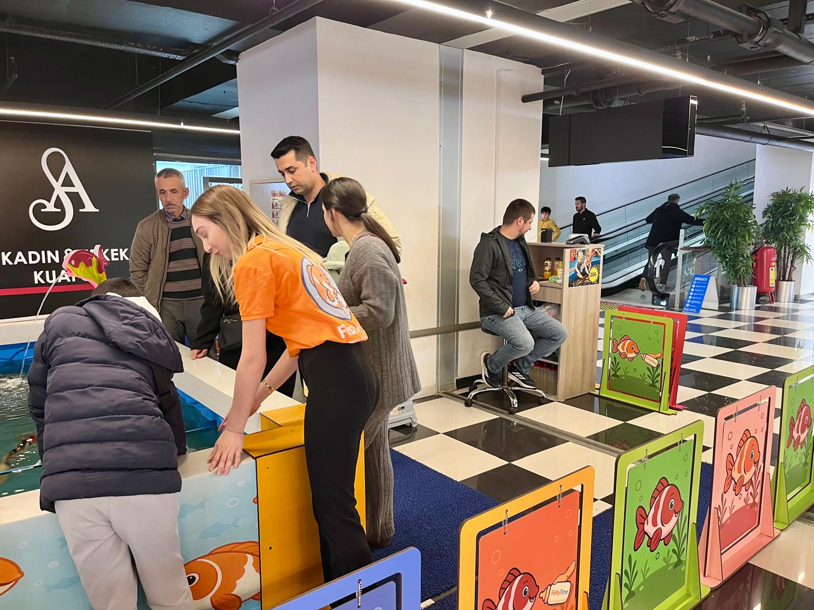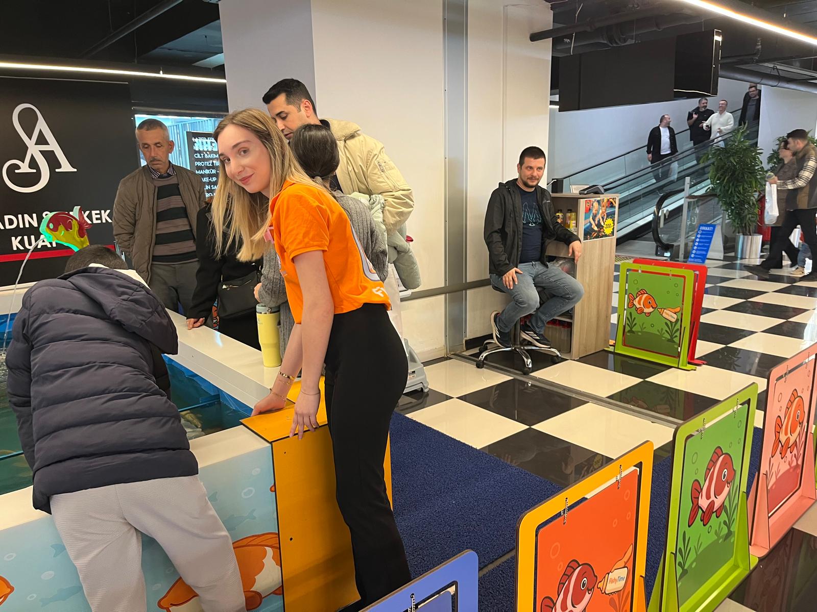 Bizim Türkiye’deki bu işi yapanlardan farkımız, onlar küçük balıklardan sayı olarak fazla yapıyorlar. Biz ise koi balıklarından daha büyükleriyle sayı olarak az yapıyoruz. Çocuklar akvaryumda istedikleri balıkları tek biberonla besleyebiliyorlar, yani şu demek çocuk girdiği akvaryuma bir tane balığı çok beğendi rengini şeklini bir biberonla beraber balığın boyuyla alakalı olmak üzere onu tek biberonla besleyebiliyor. Bizim konseptimiz bu şekilde, diğerlerinden bizi ayıran şey her zaman önce çocukların eğlenmesidir. Bu işin hemen kısa sürmesini, çocukların orada yarım saat güzel vakit geçirmelerini, ebeveynleri içeri alıyoruz.