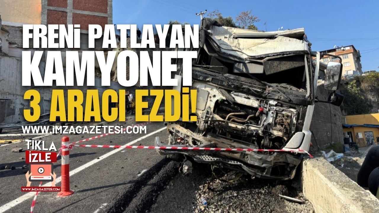 Trabzon’un Ortahisar ilçesinde belediyeye ait bir kamyonet, el freninin boşalması sonucu yokuş aşağı kayarak 3 araca çarptıktan sonra yaklaşık 20 metrelik duvardan yola düştü.