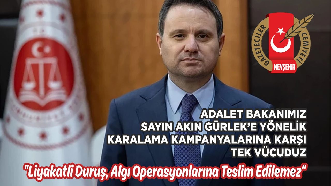 Nevşehir Gazeteciler Cemiyeti, Adalet Bakanı Akın Gürlek’e yönelik haksız ve hukuksuz olduğu belirtilen saldırıları kınadığını kamuoyuna saygıyla duyurdu.
