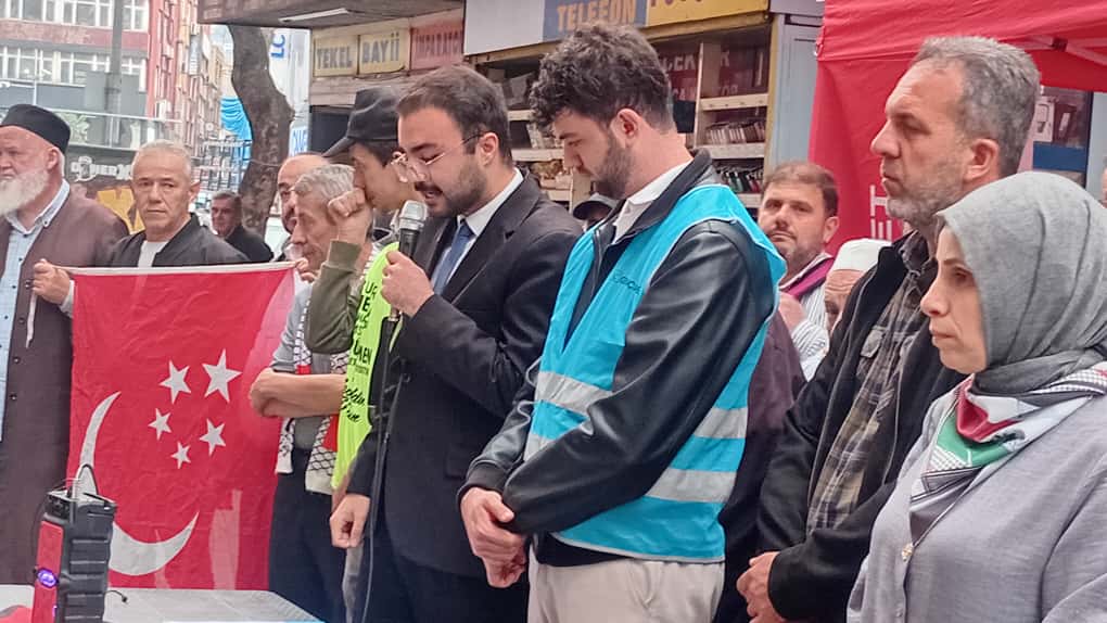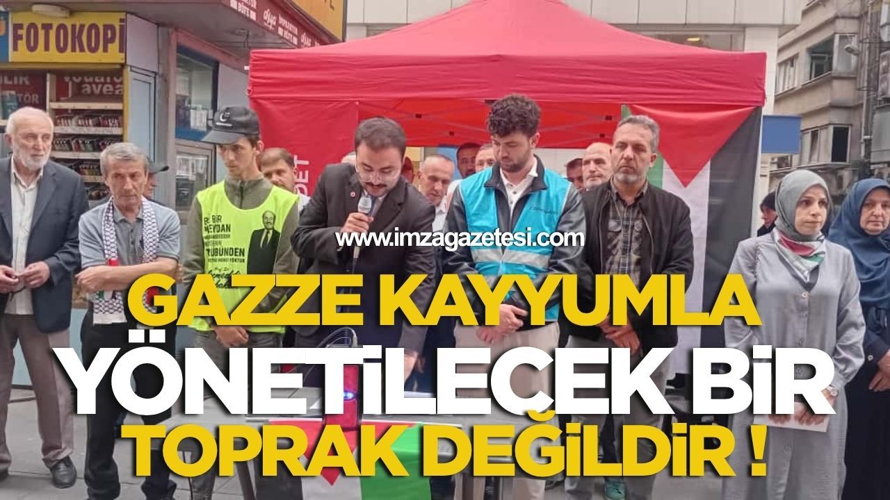 Toplanan grup adına basın açıklamasını yapan Saadet Partisi Zonguldak İl Gençlik Kolları Başkanı Uğur Yazıcı, konuşmasına “Bugün yalnızca bir anma için bir araya gelmedik. Yanan bir coğrafyanın, kuşatma altındaki bir halkın ve vicdanı sarsılmamış insanlığın sesi olmak için buradayız” sözleriyle başladı.