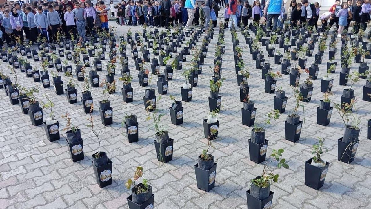 İlçe Milli Eğitim Müdürlüğü, Orman İşletme Müdürlüğü ve İlçe Müftülüğü koordinasyonunda yürütülen etkinlikte öğrencilere gül fidanı dağıtımı yapıldı.