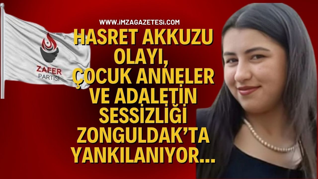 Zafer Partisi Zonguldak İl Kadın Kolları Başkanlığı, Çaycuma’da hayatını kaybeden 16 yaşındaki Hasret Akkuzu’nun ardından yaptığı açıklamada, çocuk istismarına, adaletin yetersizliğine ve devletin duyarsızlığına dikkat çekti.
