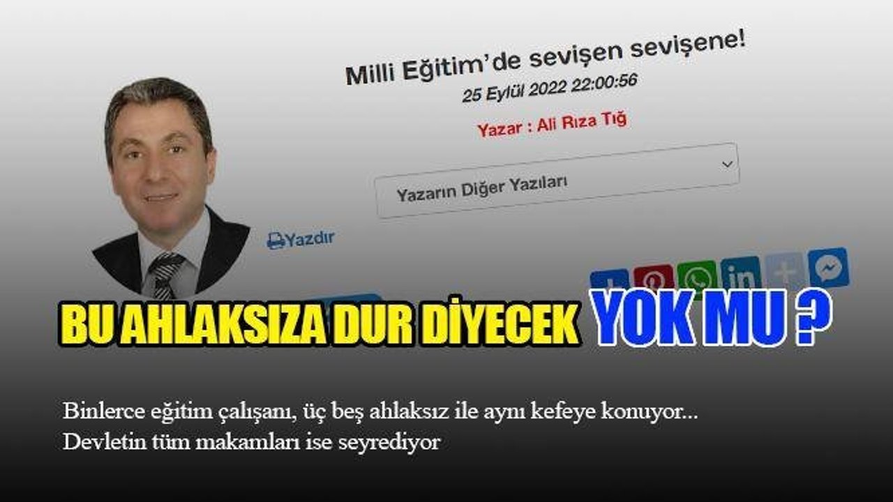 25 Eylül tarihli köşesindeki isimsiz ve tüm eğitimcileri zan altında bırakacak köşe yazısında şunlar yazıldı: