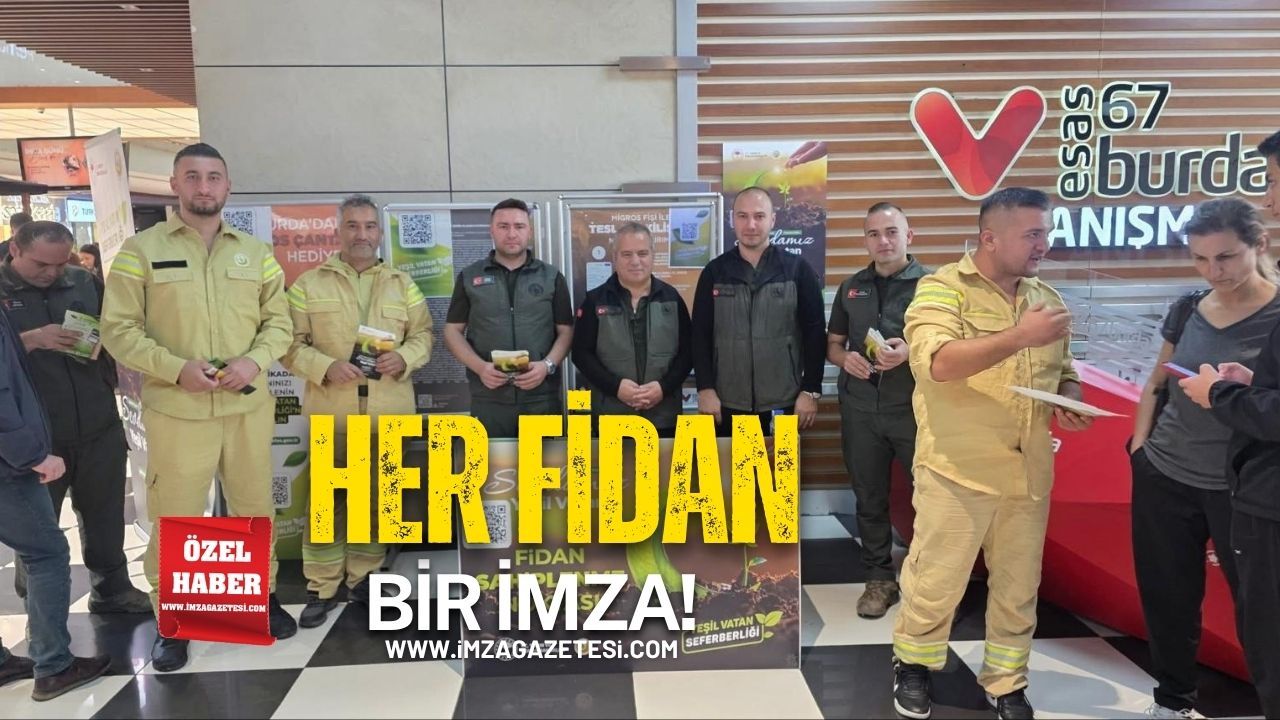 Gazeteci Orhan Akyüz’ün haberine göre, Zonguldak Orman Bölge Müdürlüğü, “Yeşil Vatan Seferberliği” kapsamında Esas 67 Burda AVM’de açtığı standla “Şahidimiz Toprak, İmzamız Fidan, Sevdamız Yeşil Vatan Olsun” diyerek herkesi geleceğe nefes almaya davet ediyor.