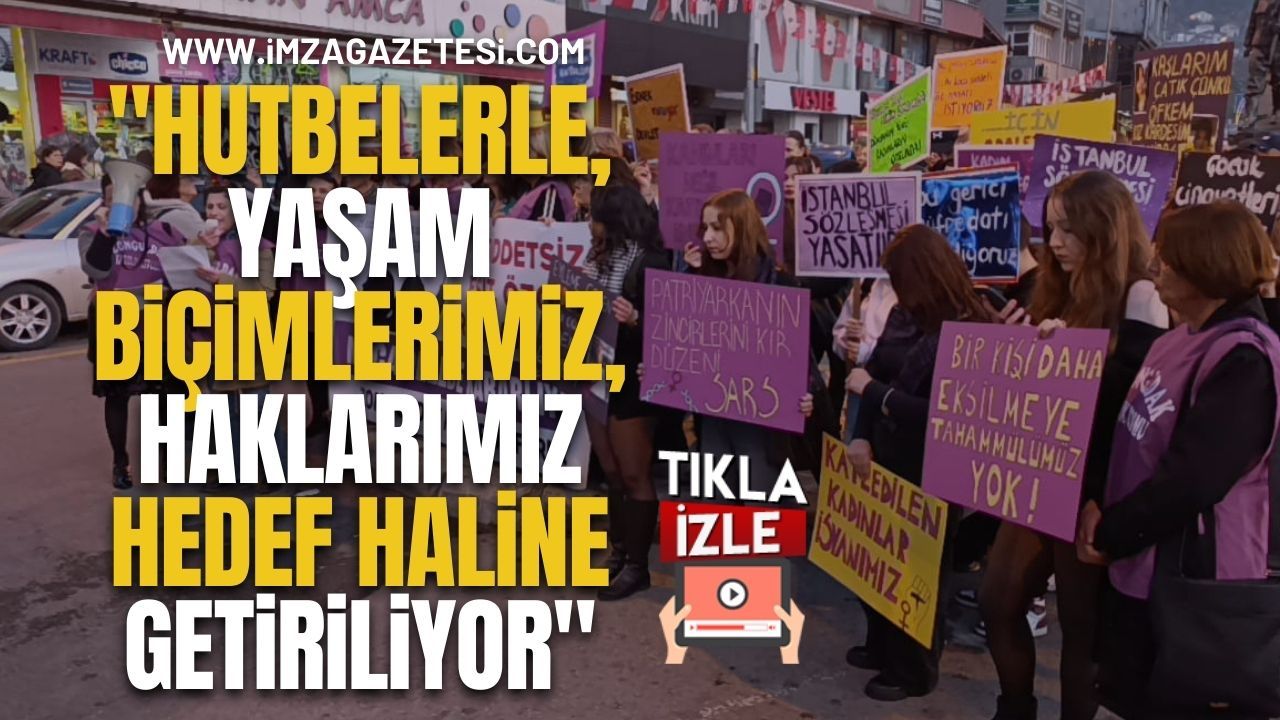 Platform adına açıklama yapan Serpil Açıl özer, "Hutbelerle, demeçlerle, yasalarla yaşam biçimlerimiz, örgütlü mücadelelerimiz, kılığımız kıyafetimiz, haklarımız hedef haline getiriliyor." Dedi.