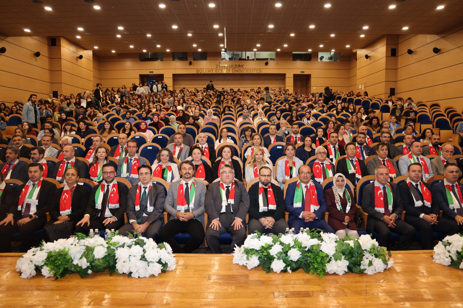 Sezai Karakoç Kültür Merkezinde düzenlenen programa; Cumhuriyet Halk Partisi (CHP) Zonguldak Milletvekili Eylem Ertuğrul, Zonguldak Cumhuriyet Başsavcısı Gökhan Kapağan, Zonguldak Bülent Ecevit Üniversitesi Rektörü Prof. Dr. İsmail Hakkı Özölçer, üniversitenin senato üyeleri, Kütahya Sağlık Bilimleri Üniversitesi Çocuk Cerrahisi Ana Bilim Dalı Başkanı Prof. Dr. İbrahim Uygun, Gazze Ahli Arab Hastanesi Ameliyathane Hemşiresi İman Uygun, Memorial Dicle Hastanesinde görevli Op. Dr. Taner Kamacı, il ve ilçe protokolü, akademik ve idari personel, öğrenciler ve vatandaşlar katıldı.