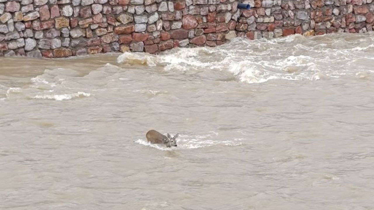 Yaralanmadığı belirlenen karaca, doğal yaşam alanına bırakıldı. Karacanın suda sürüklendiği anlar ise vatandaşlar tarafından cep telefonuyla görüntülendi.