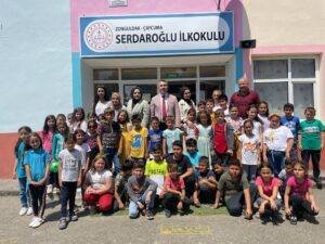 Karaelmas Kitap Topluluğu öğrencileri tarafından yapılan “Bir kitap bir insan” kütüphane projesi kapsamında 2 Haziran Perşembe günü gerçekleştirilen etkinlikte konuşan Serdaroğlu İlkokulu Müdürü Mevlüt Akça, Zonguldak Bülent Ecevit Üniversitesi Rektörüne ve kampanyayı organize eden Doç. Dr. Yücel Namal başkanlığındaki üniversitenin Karaelmas Kitap Topluluğu öğrencilerine teşekkür etti.
