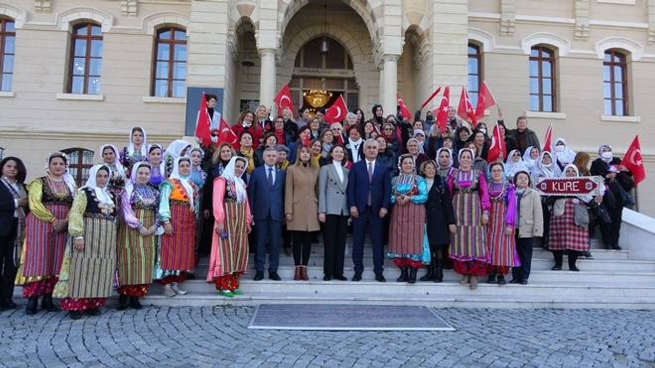 Kastamonulu kadınlar, Vali Avni Çakır ile görüşerek, ilk Türk kadın mitingi hakkında bilgilendirmede bulundu. 10 Aralık tarihinin hem Kastamonu için hem de ülke için önemli bir gün olduğunu vurgulayan Vali Avni Çakır, “Kastamonu’nun çok aktif bir şekilde lojistik üs olarak yer aldığı, İstiklal Yolu olarak haklı bir ün aldığı Milli Mücadele'de tam da ihtiyaç duyulan zamanda Anadolu’nun işgaline karşı güçlü Kastamonu’da güçlü bir haykırış gerçekleşti. Bu haykırışı Türk milletine çok ciddi bir güç verdi. Gazi Mustafa Kemal ve tüm aziz şehitlerimiz Kastamonu’dan kadınlarımızın bu sesinin yükselişiyle çok büyük moral buldular. Bu anlamda da dünyada da çok önemli bir yer aldı. Çok gururlu bir gün. Pandemi şartları hala devam ediyor. Kastamonu’nun daha geniş katılımlı etkinlikleri özlediğini bugün de gördük. İnşallah seneye ülke çapında kutlamanın zamanı gelmiş geçiyor. Seneye her ilden kadınlarımızın katılımıyla gerçekleştirilecek bir etkinliğin hazırlıklarına şimdiden başlamamız gerektiğini görüyoruz. Biz de idareciler olarak hem bu tür etkinliklerin düzenlenmesi için çabalıyoruz, hem de toplum sağlığını gözeterek bir dengede tutmamız lazım. Toplum olarak aşılanmanın da etkisiyle bir rahatlık oluştu ama tehlike henüz geçmedi. O yüzden bu düzeydeki katılımları kimse eksik anlamasın. İlk fırsatta daha coşkulu kutlamalar yapacağız. 1919’daki büyüklerimizi, aziz Türk milletimizin annelerini rahmetle ve minnetle anıyorum. Onların yaktığı meşale Anadolu’ya dağıldı. Kadınıyla, erkeğiyle, yaşlısıyla, gençleriyle Milli Mücadelemiz zaferle taçlandırıldı ve ardında Cumhuriyetimiz ilan edildi” dedi.