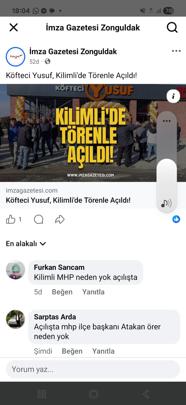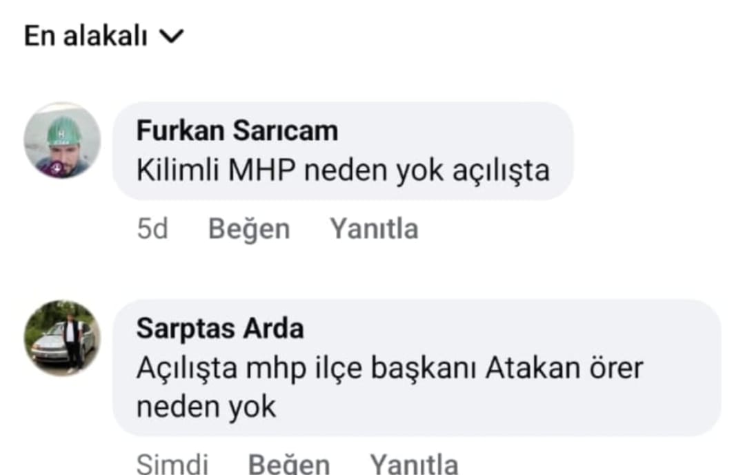 Furkan Sarıçam isimli bir kullanıcı, “Kilimli MHP neden yok açılışta?” yorumunu paylaşırken, Serttaş Arda isimli kullanıcı ise, “Açılışta MHP İlçe Başkanı Atakan Örer niye yok?” ifadelerini kullandı. Bu paylaşımlar, törene ilişkin tartışmaları artırdı.