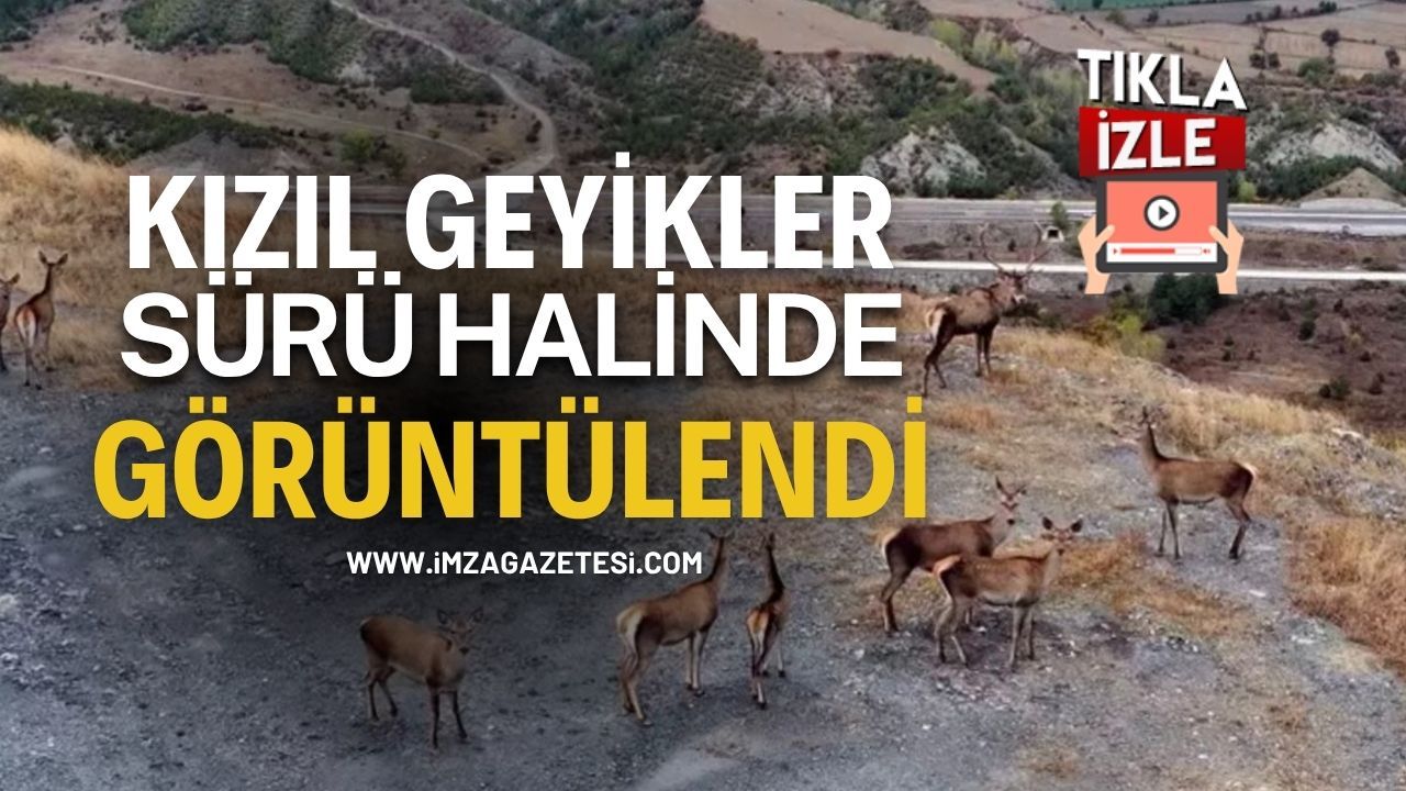 Drone ile görüntülenen kızıl geyikler, sürü halinde dolaşırken fotoğraflandı ve bu anlar doğa tutkunlarının büyük ilgisini çekti.