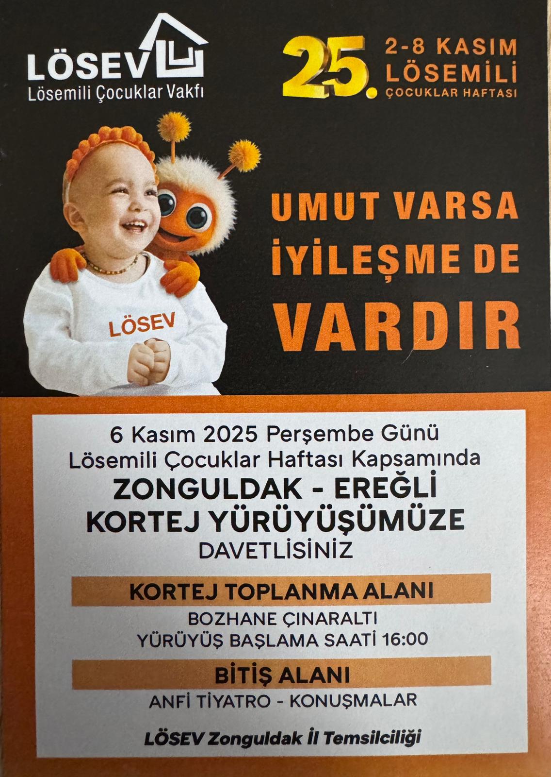Yürüyüş, Kdz. Ereğli Bozhane Çınaraltı Mevkii’nden başlayarak Anfi Tiyatro Alanında son bulacaktır. Etkinlik boyunca katılımcılar, lösemili çocuklara moral vermek ve farkındalık oluşturmak amacıyla turuncu ve beyaz renklerin simgelediği dayanışma ruhuyla bir araya gelecektir.
