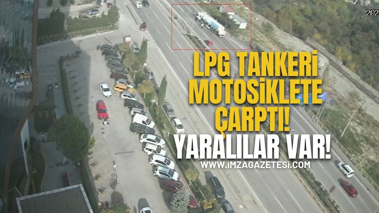 Karabük’te meydana gelen kazada, sürücüsünün önünde aniden duran otomobile çarpmamak için manevra yaptığı LPG tankeri, iki motosiklete çarptı. Kazada motosiklet sürücüleri yaralanırken, olayın araç içi ve güvenlik kamerası görüntüleri ortaya çıktı.